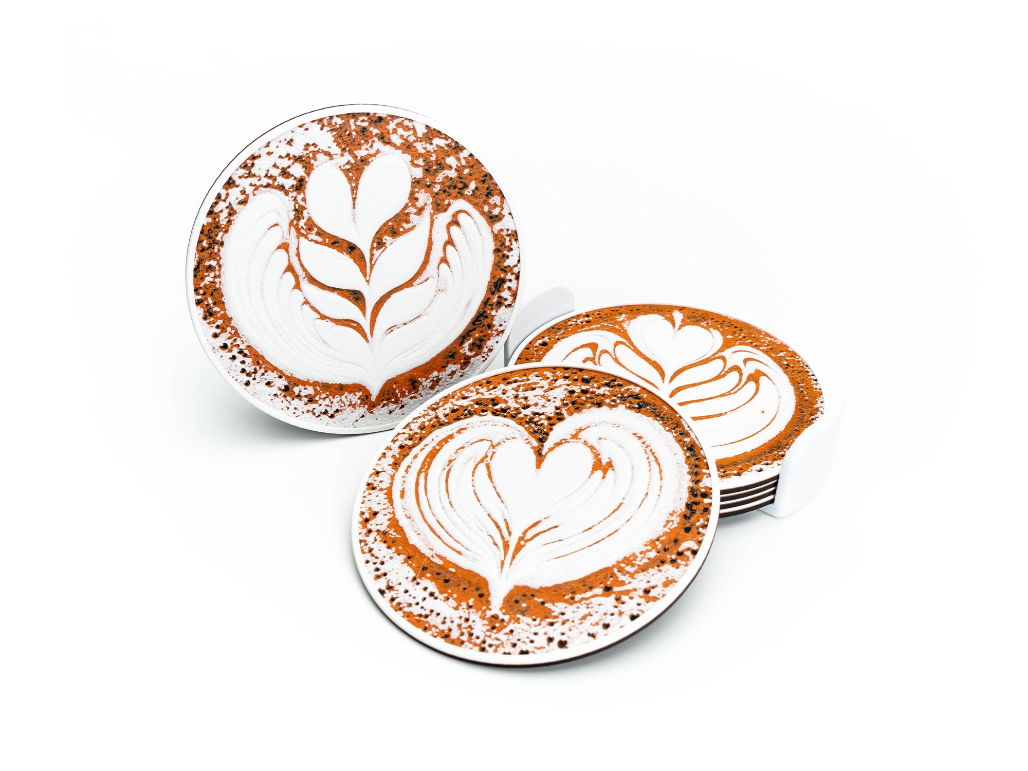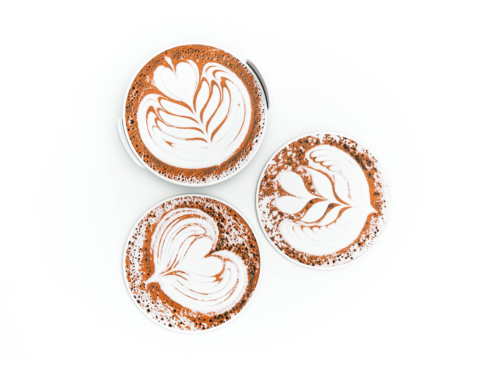 Latte Art Coasters (3-pack w/holder) color or greyscale, by bamingodesign