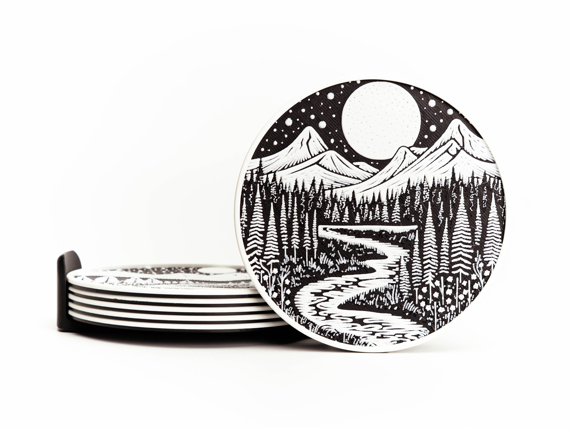 Mountain Coasters (3-pack w/holder) color or greyscale, by bamingodesign